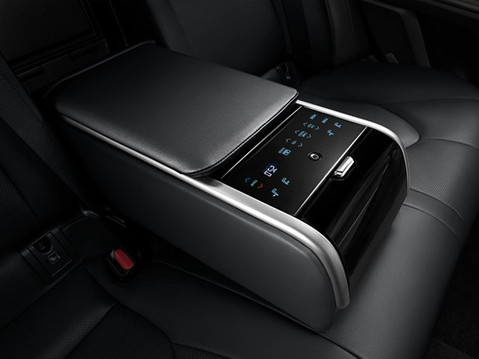 Tỳ tay hàng ghế sau chống mỏi và có thể chỉnh được âm thanh